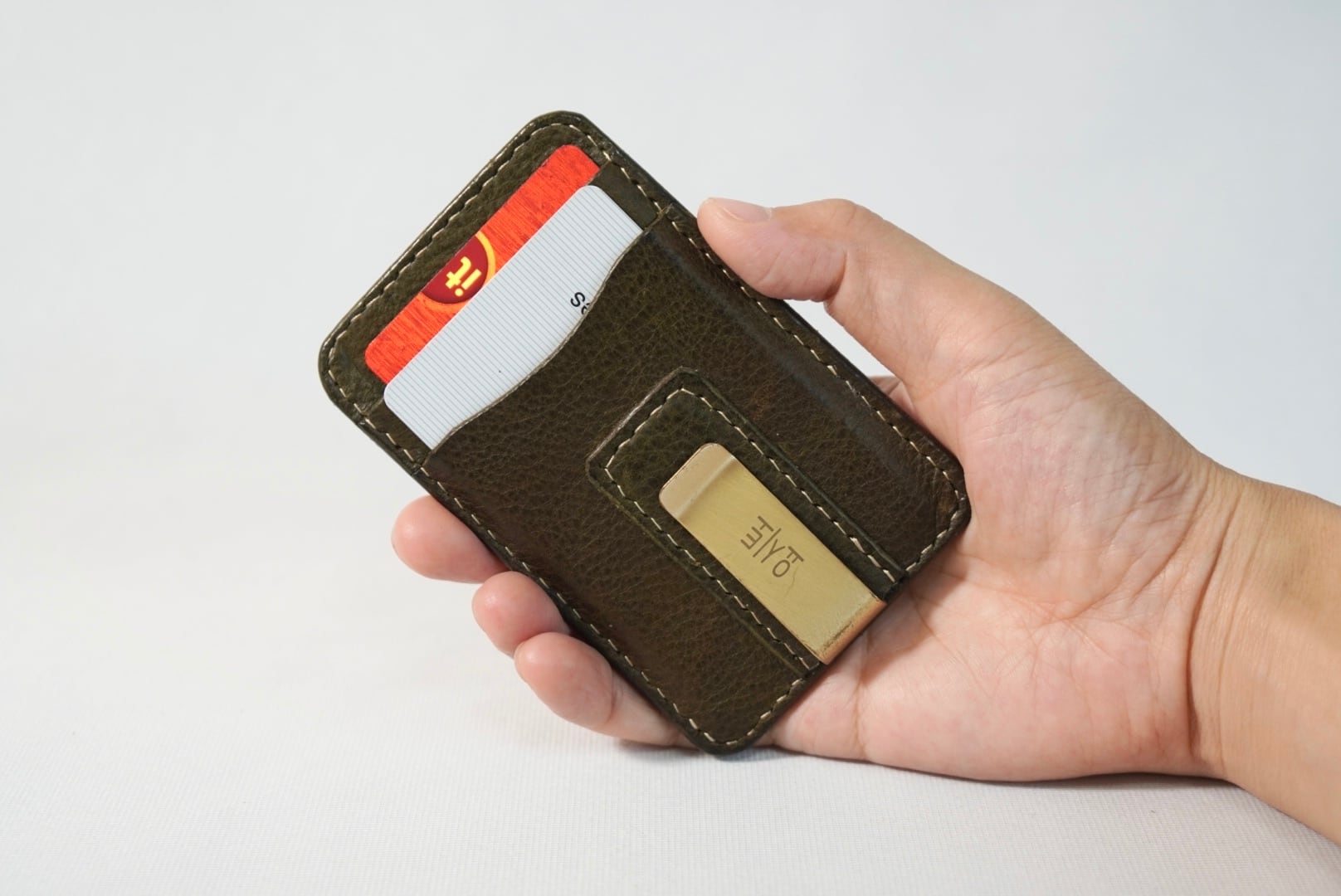 3.お札の収納場所としてホールド力の強い金のマネークリップを使用しています。日本ではキャッシュが必要な場面が未だにあるのでお札を三つ織りにして収納しご使用ください