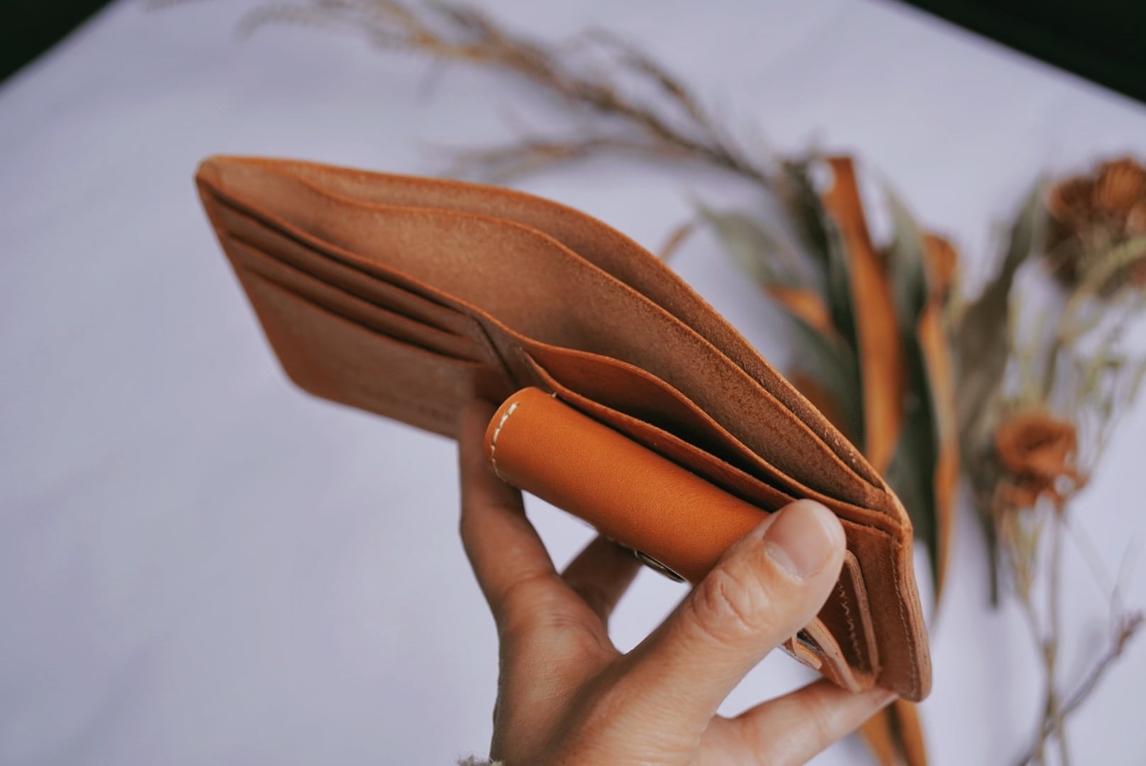 布を一切使わずイタリア製の良質レザーで製作した二つ折り財布です。