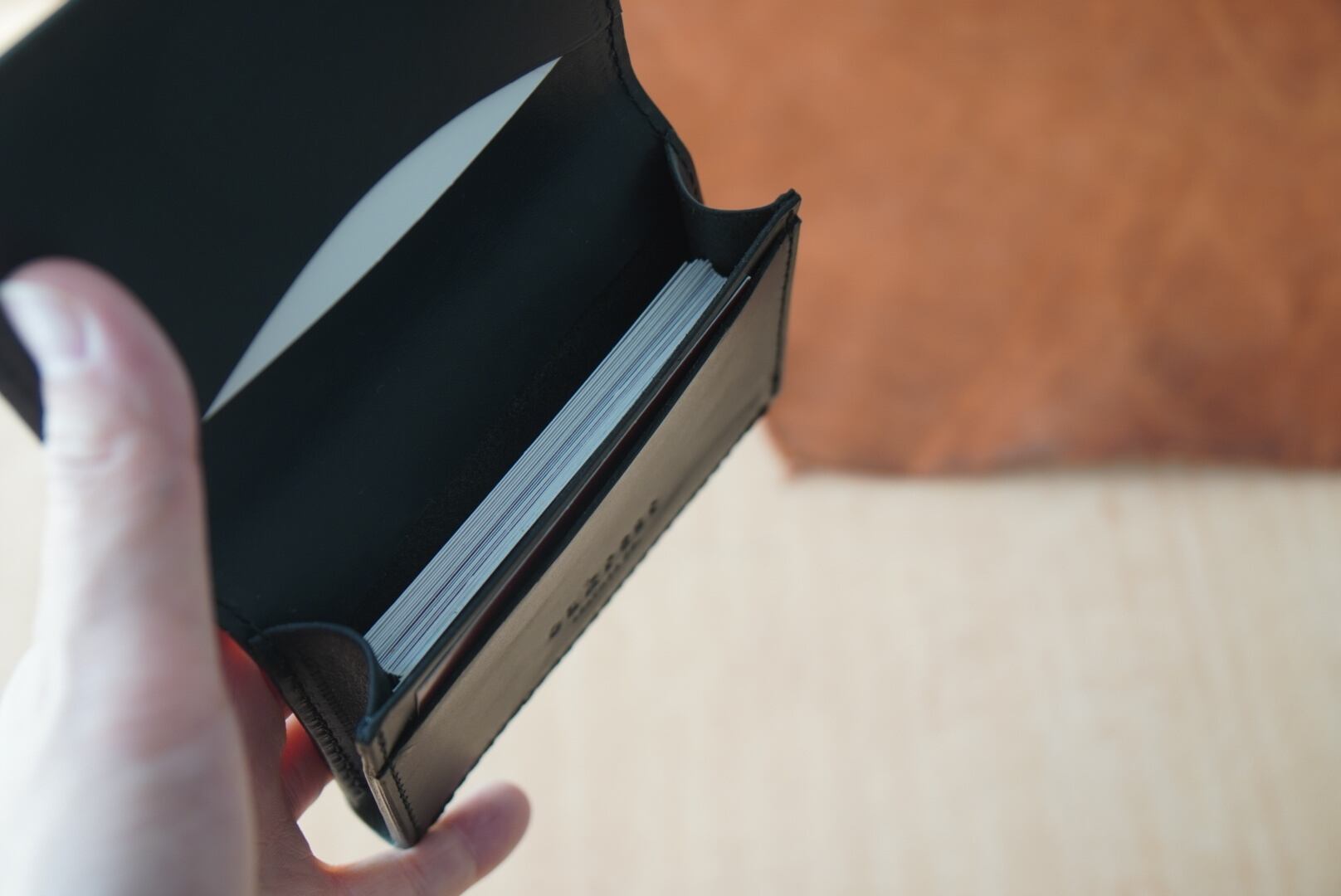 メイン部分の他にカード入れが2箇所あるため、交換した名刺やカードを入れて使用することが出来ます。名刺交換の機会があまりない方も、誰かに名刺を渡すことがある時のために、持っておくだけで一味違う印象に。ビジネスマンはもちろん、女性にも愛用されるシンプルなデザインにしました。自分自身のため、または大切な人への贈り物としてもぴったりです。